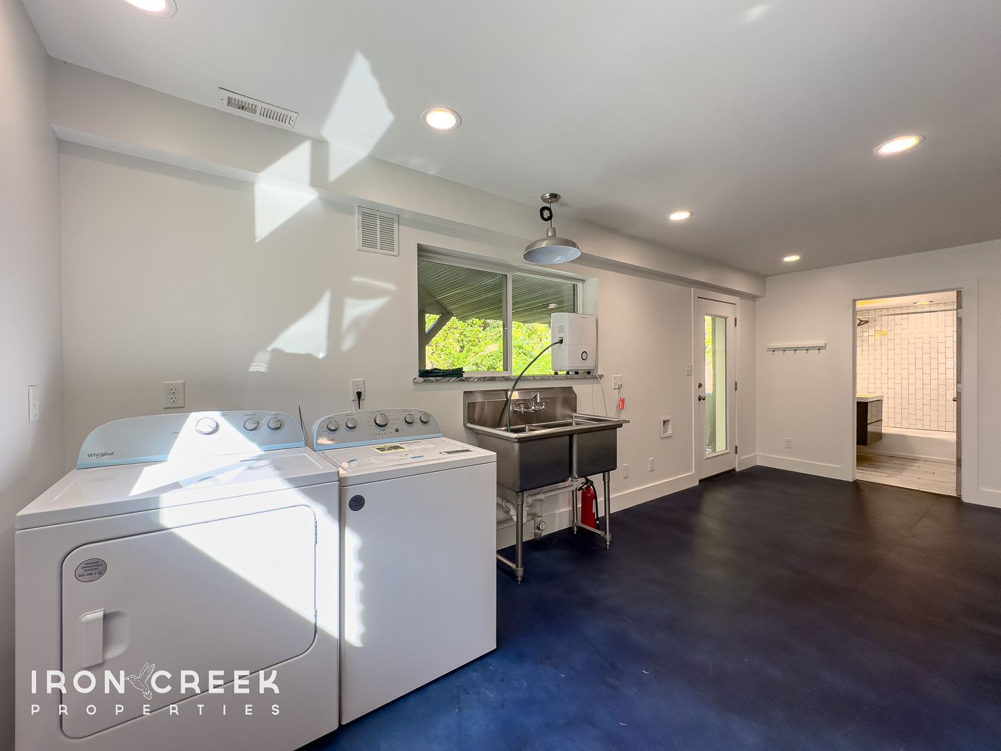 The finished lower level provides flexible space with finished concrete flooring, an additional bedroom and bath, utility sink, storage room, and direct access to the fenced backyard. The home offers electric heat with natural gas backup and central air conditioning. A spacious wood deck overlooks the mature landscaping, while the garage and covered carport provide ample parking and storage.