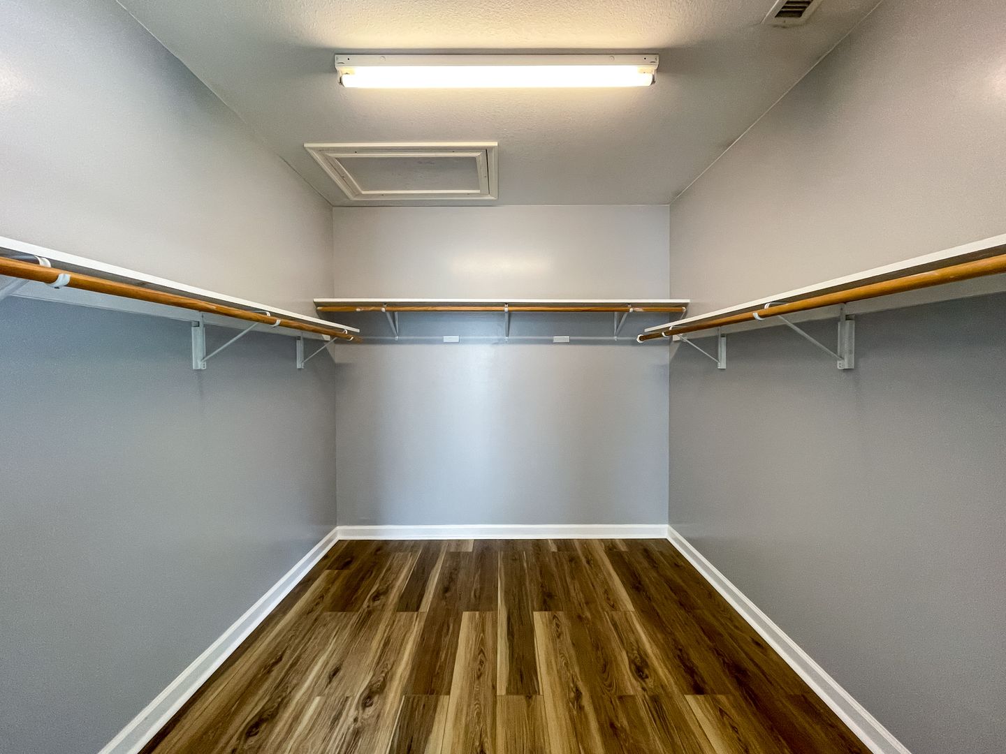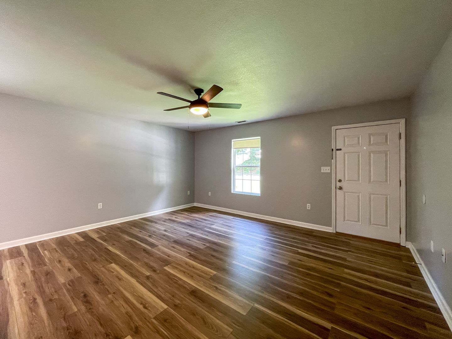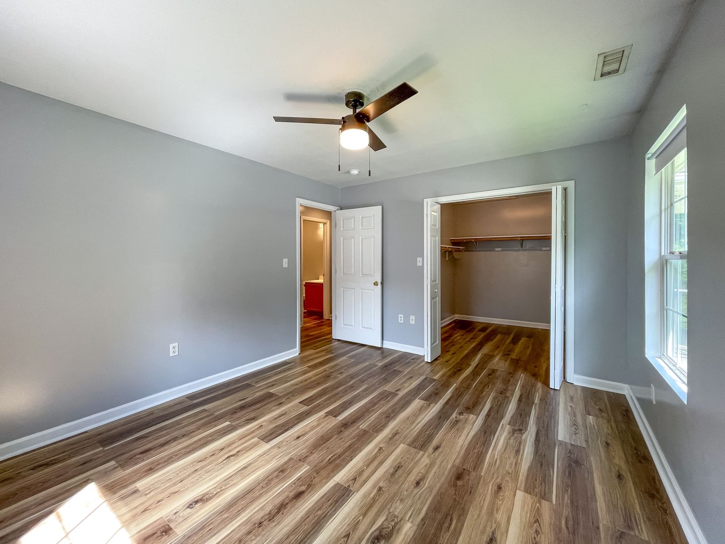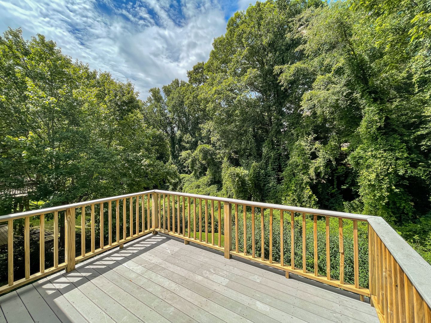 The kitchen is outfitted with a refrigerator, electric range, built-in microwave, and dishwasher. The spacious living room features new luxury vinyl plank flooring. The master bedroom has a large, walk-in closet. Central heat and air as well as ceiling fans throughout help keep you comfortable year-round. The back features a deck overlooking a large yard backing up to a small creek.
