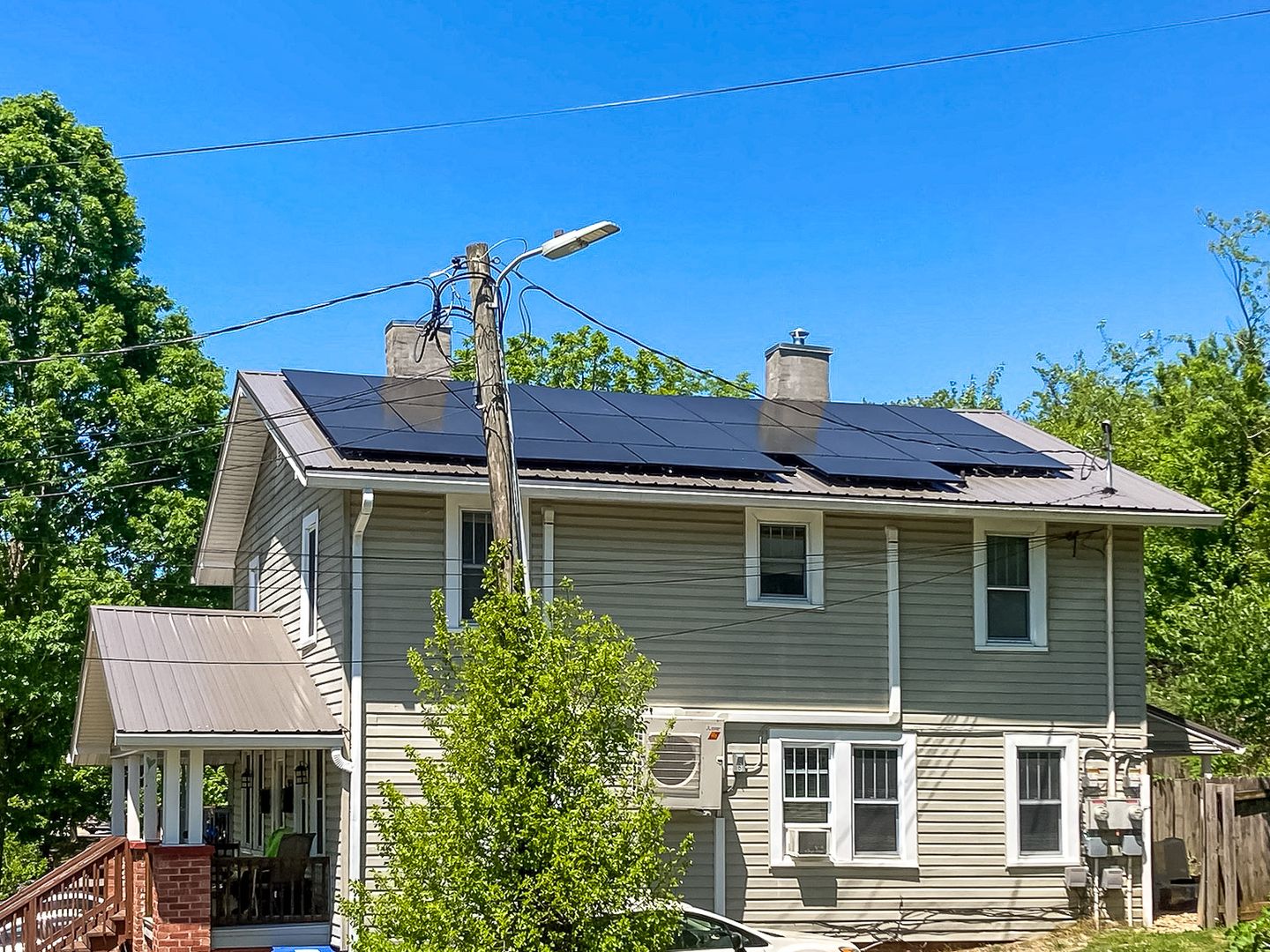 This home features a 110v plug by the parking area that can be used to charge EV's. Solar panels provide incredible power-generation and contribute to the climate-conscious effort that Asheville is known for. Electric vehicle charging is welcomed - a huge feature for any EV driver, and the landlord pays the electric bill. Washer and dryer included.