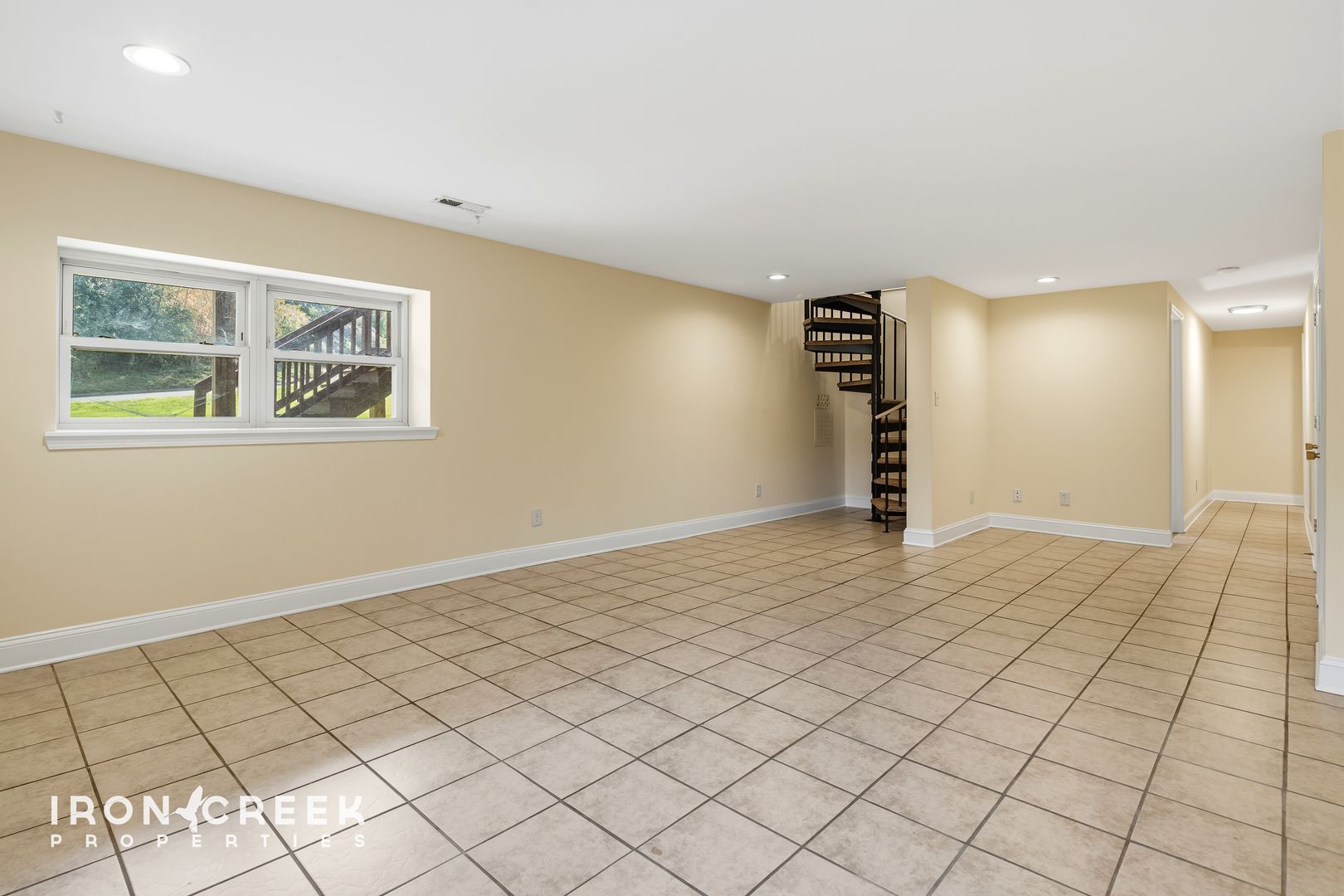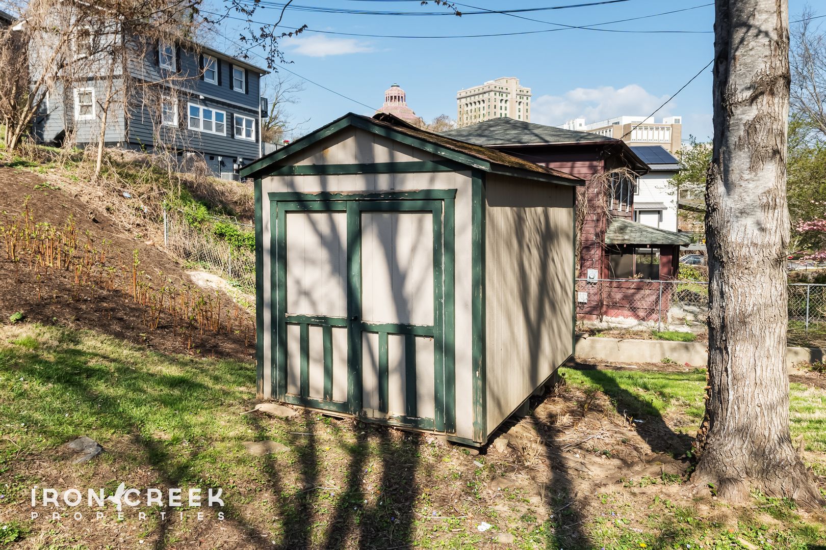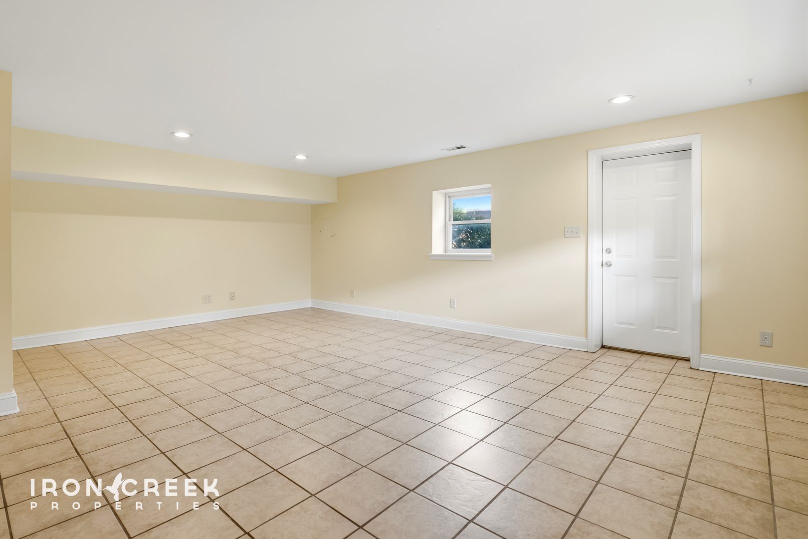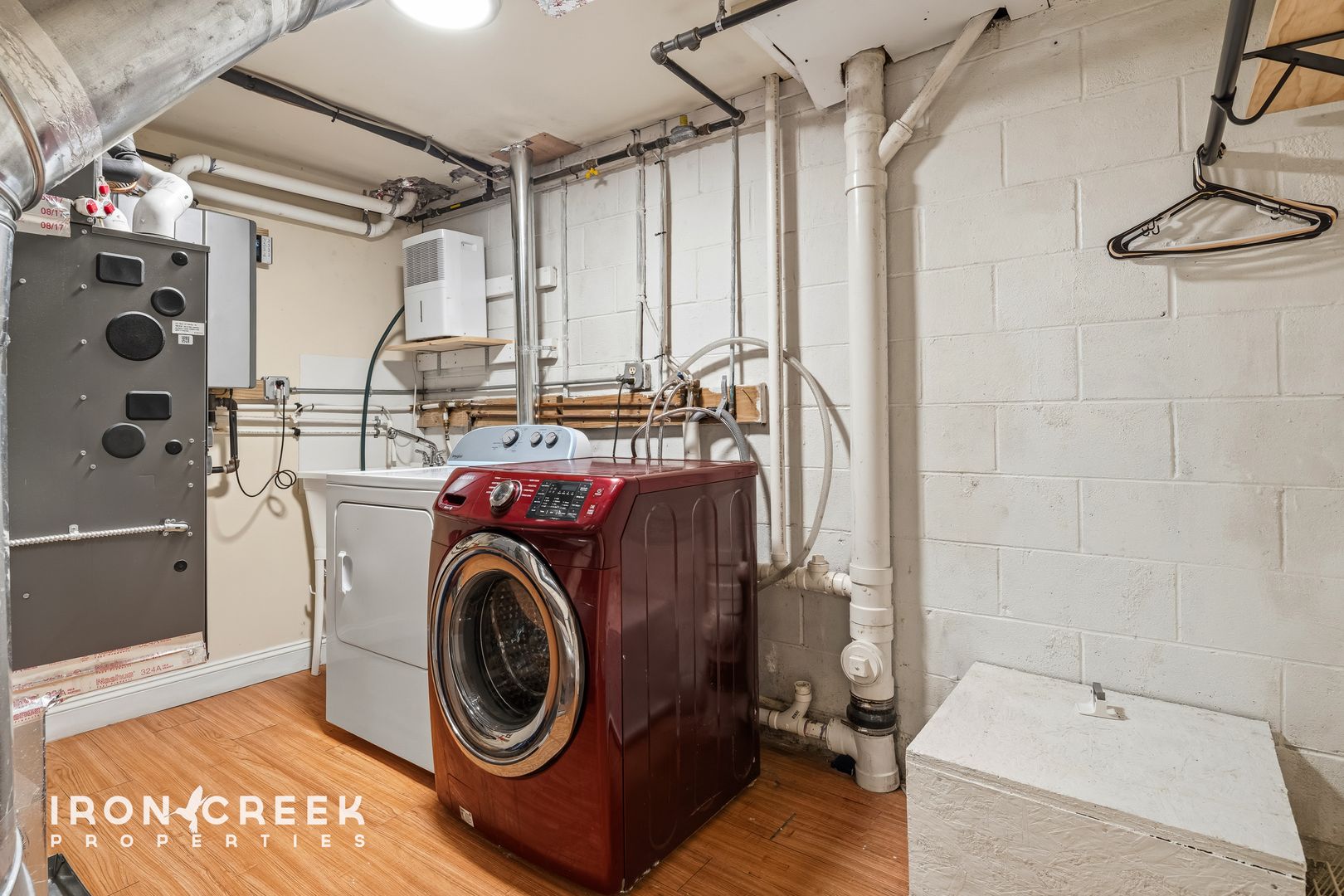 The walk-in daylight basement adds significant living space, with a large bonus room, a third bedroom, a full bath with shower stall, and a dedicated laundry room outfitted with a full-size washer and dryer. A spiral staircase connects the basement to the main level, and the basement also has its own exterior entrance. A tankless natural gas water heater provides on-demand hot water. Central gas heat and central air keep the home comfortable year-round. Driveway parking is available on site. A storage shed on the property handles the overflow.