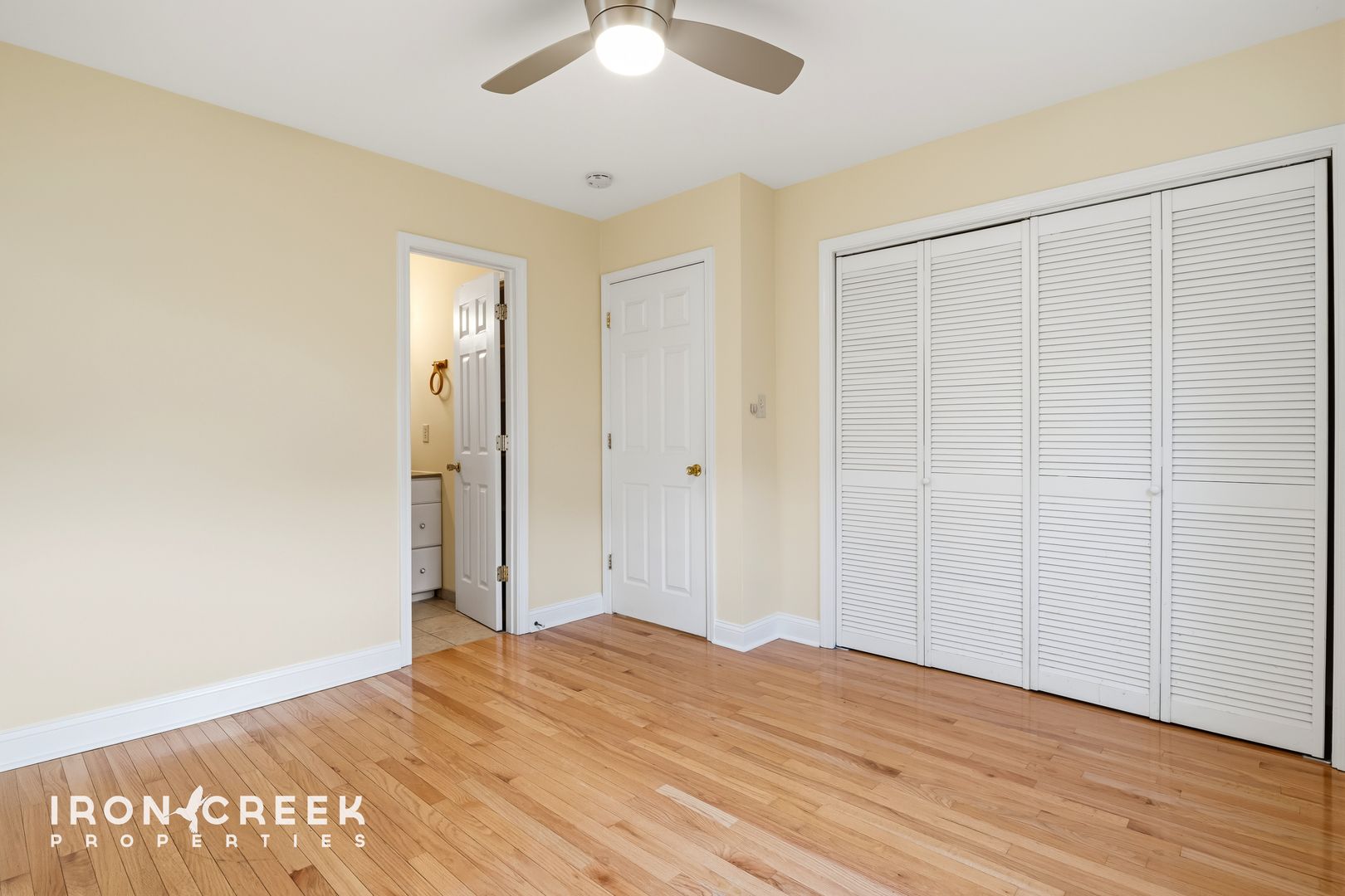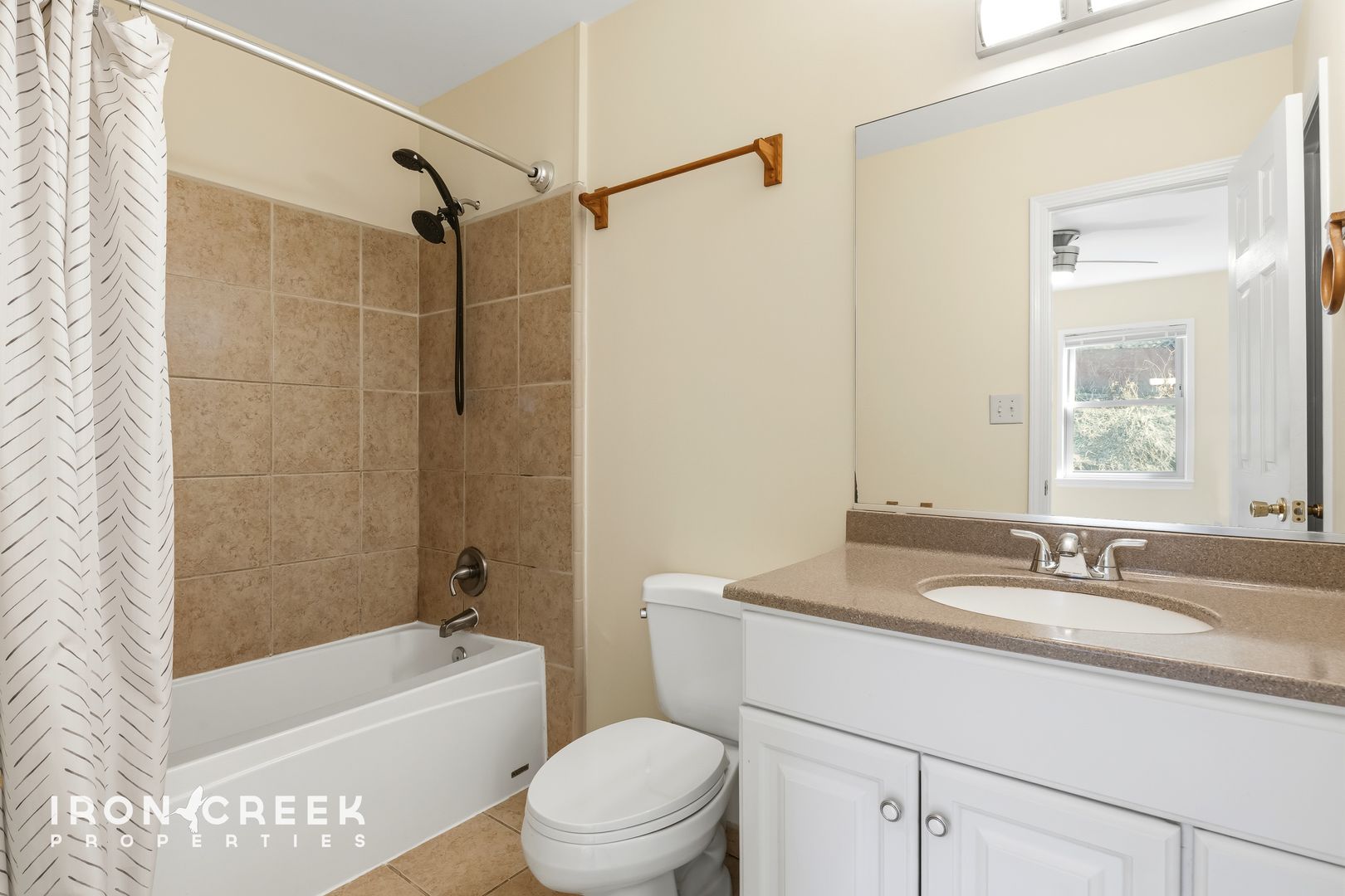 The main level offers two comfortable bedrooms with wood floors, each with its own character and natural light. The primary bedroom is a quiet retreat with a private en suite bath featuring a tub/shower combo. The second bedroom is served by a full bath with tub/shower combo, accessible from the living area.
