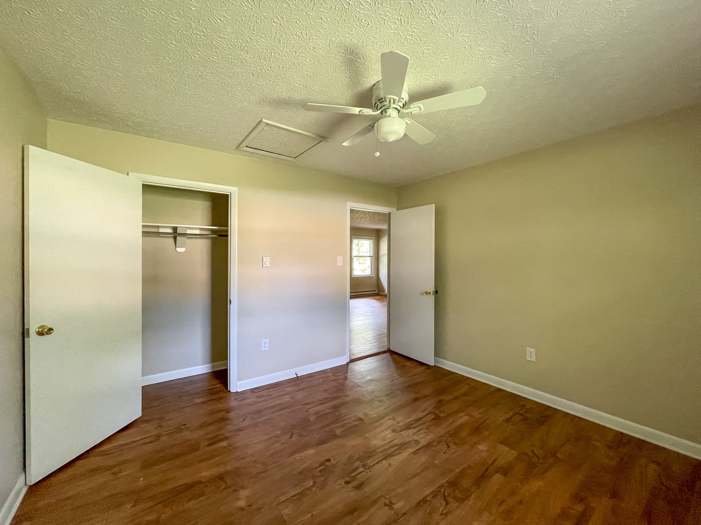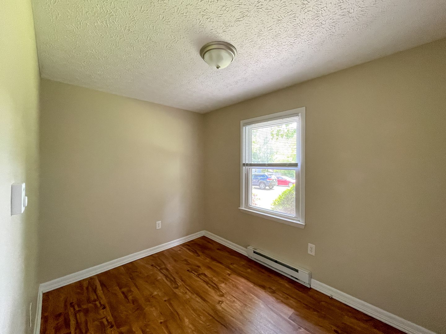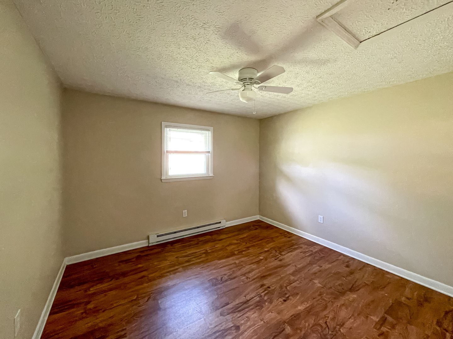 This lovely two-bedroom, one-bathroom apartment offers comfortable living just minutes from downtown Black Mountain. The home features a bright and open layout with luxury vinyl plank flooring throughout. The kitchen comes fully equipped with modern appliances including an electric range, dishwasher, and refrigerator, making meal preparation convenient and enjoyable. Each bedroom offers plenty of natural light and includes ceiling fans for year-round comfort. The full bathroom features a tub/shower combination with built-in storage shelves. Electric baseboard heating provides efficient warmth during cooler months. Washer/dryer connections are provided for easy at-home laundry.