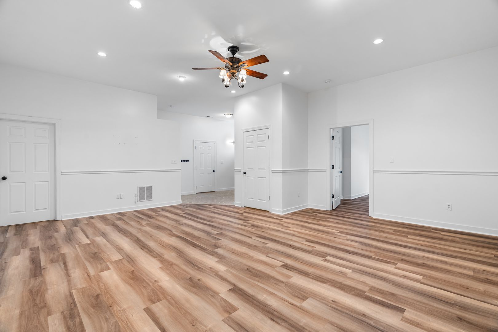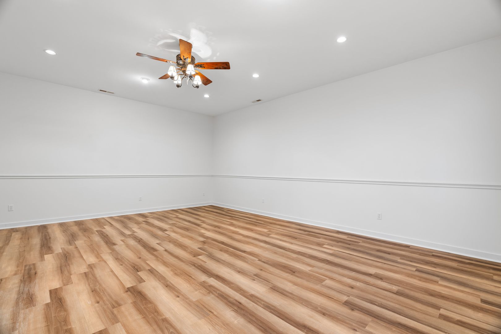 The finished basement adds significant living space with a second family room and adjacent office or flex space, providing versatility for remote work, hobbies, or additional entertaining area. This level features luxury vinyl plank flooring throughout and includes a full bathroom.