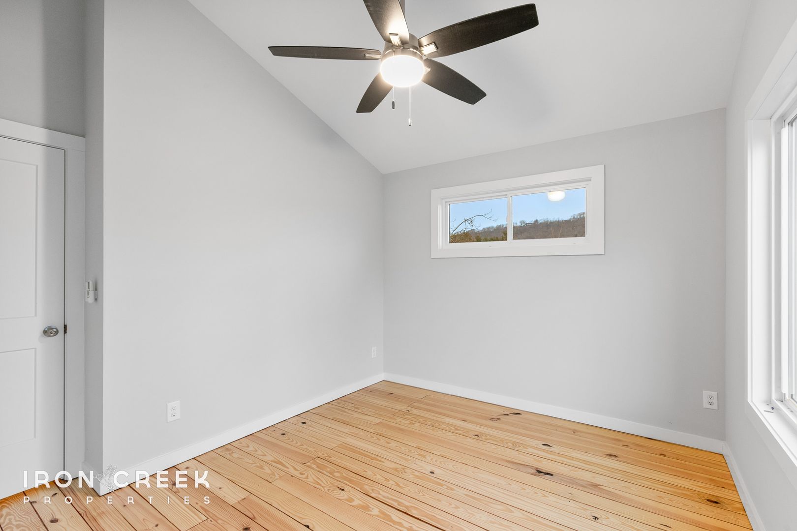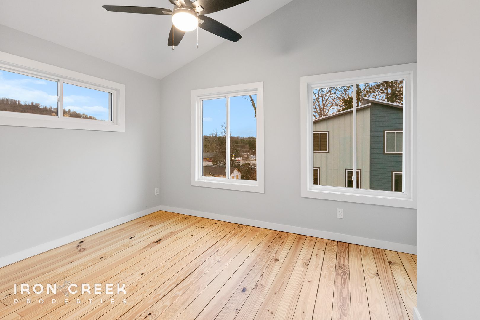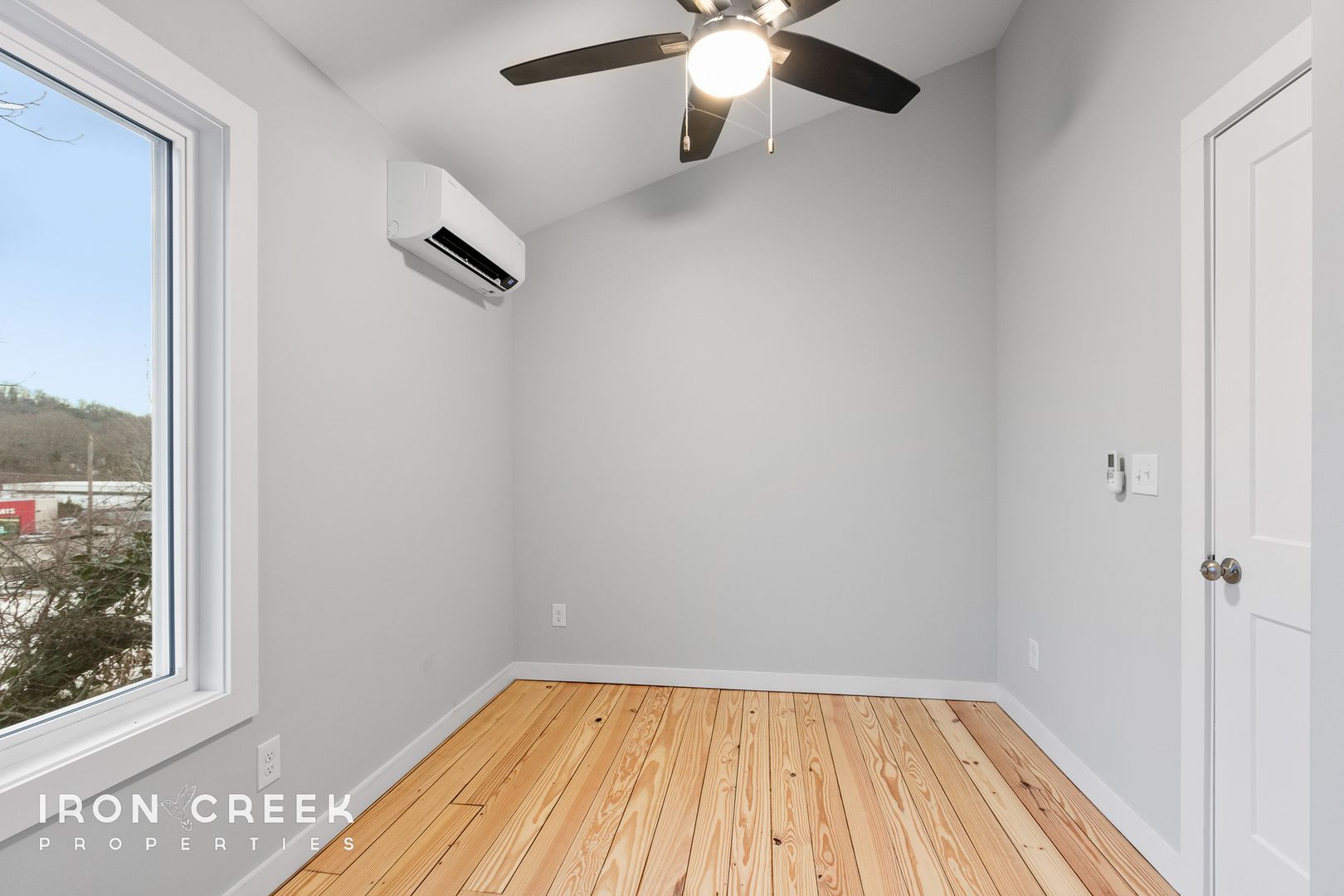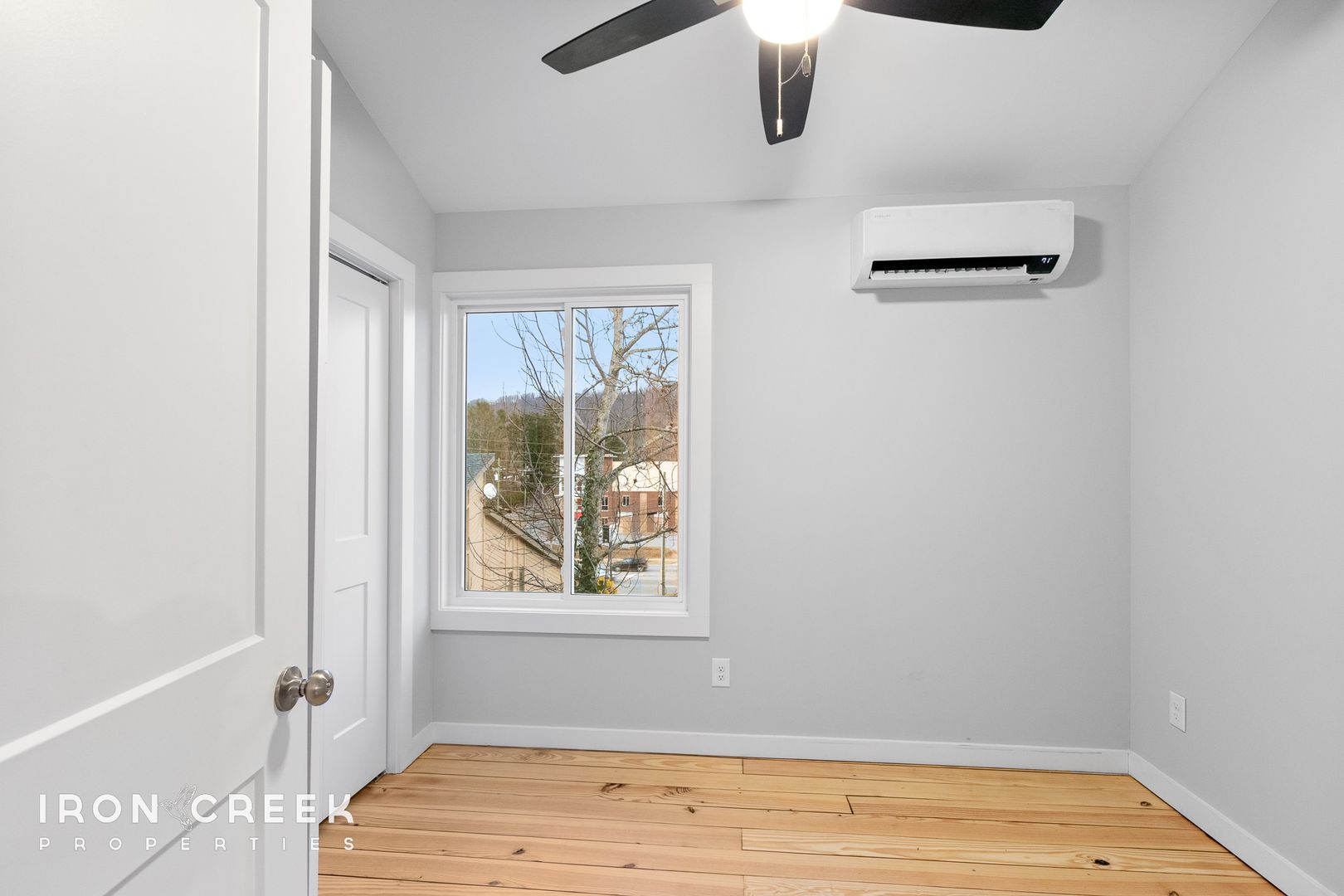 This cottage is mere minutes from some of Asheville's best shopping and entertainment opportunities. The cottage is spread across three stories. A carport and laundry room, with included washer and dryer, are located on the lower level. The kitchen, living room, and a half-bath are located on the mid-level. The two bedrooms and full bath are located on the top level.
