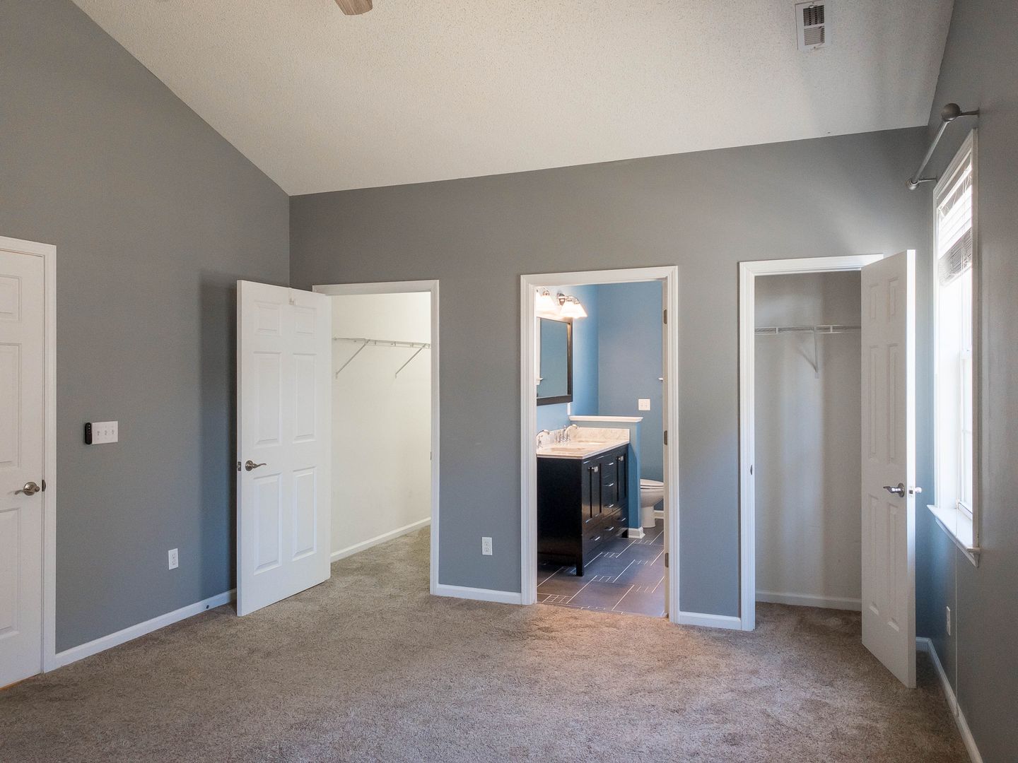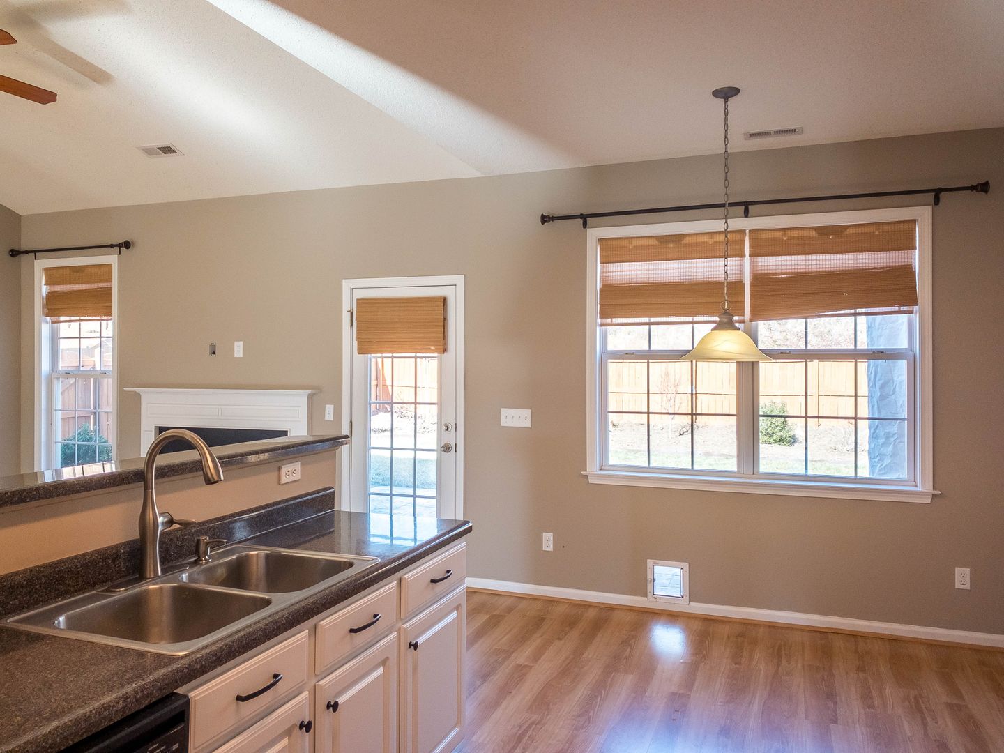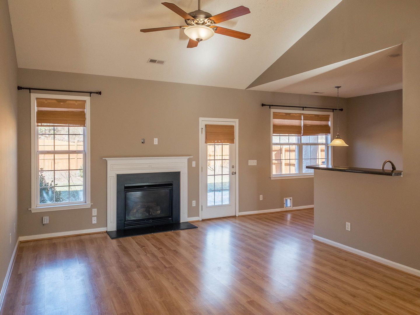 This home features an open, split floor-plan centered around a spacious living room with a gas-log fireplace and vaulted ceilings. The kitchen is outfitted with an electric range, built-in microwave, French-door refrigerator, dishwasher, double-basin sink, ample cabinet space and breakfast nook. The master suite has two closets, one a large walk-in, and en suite bathroom with double vanity, soaking tub, and shower stall. Two more bedrooms and second full-bath are located separately on the other side of the house.