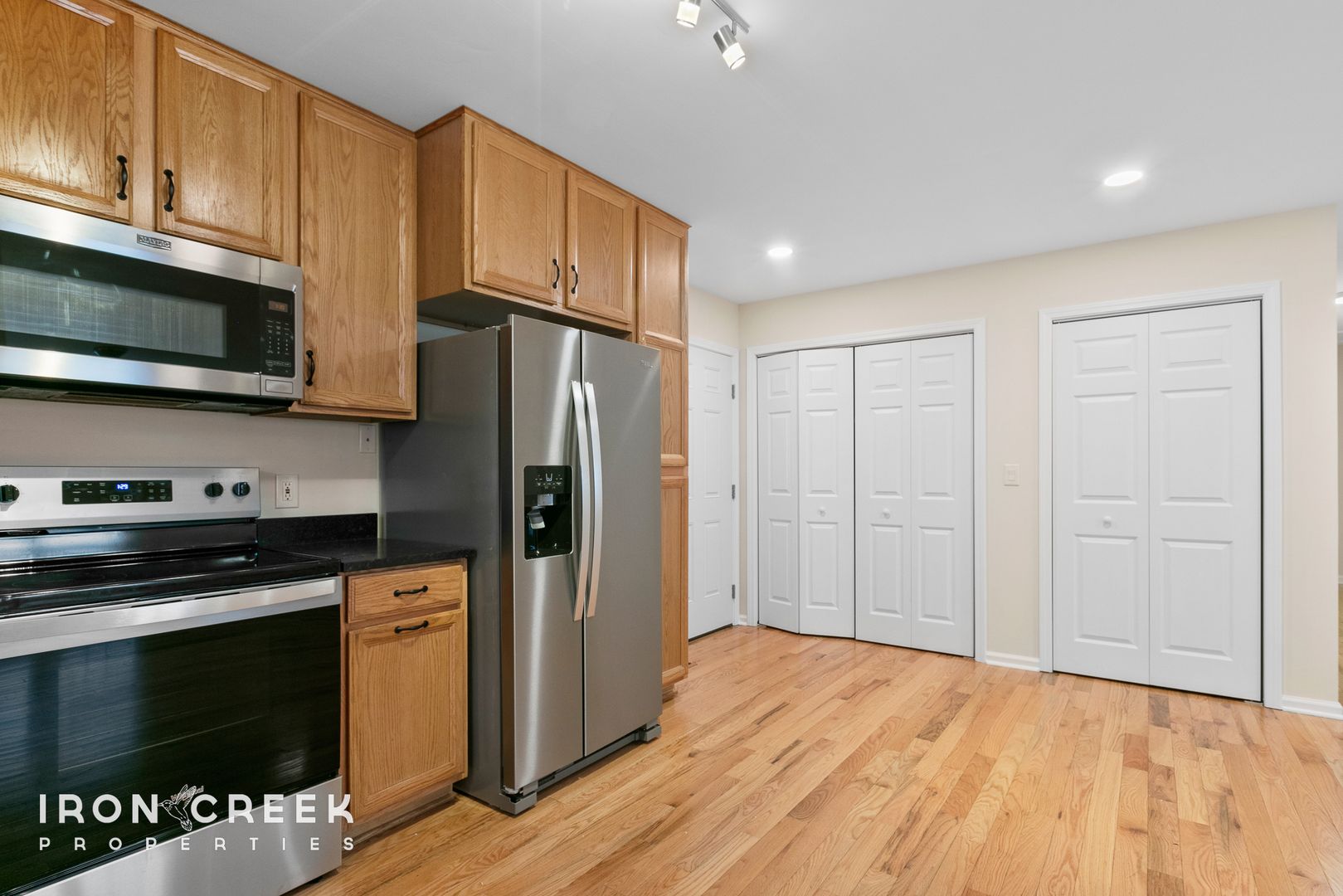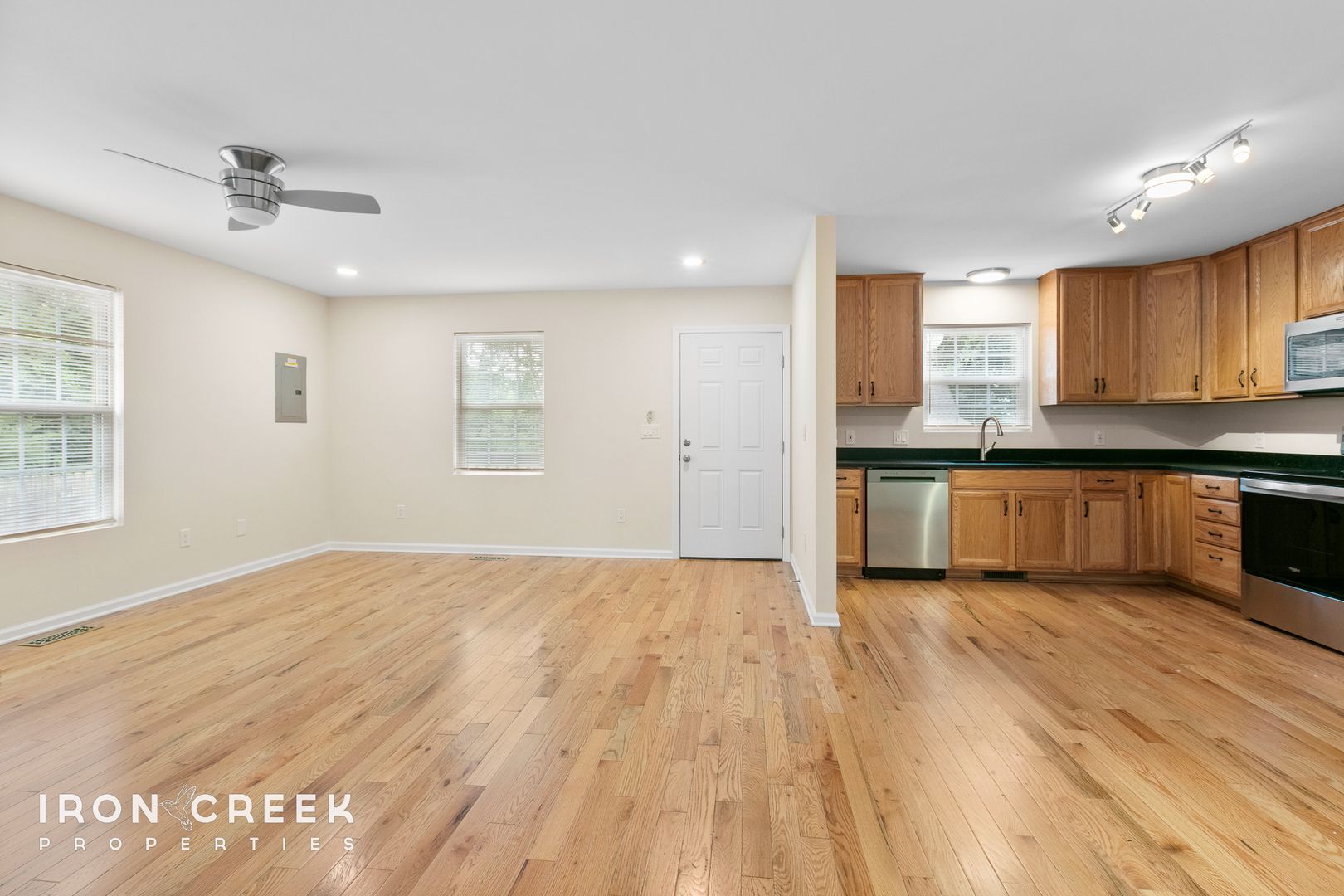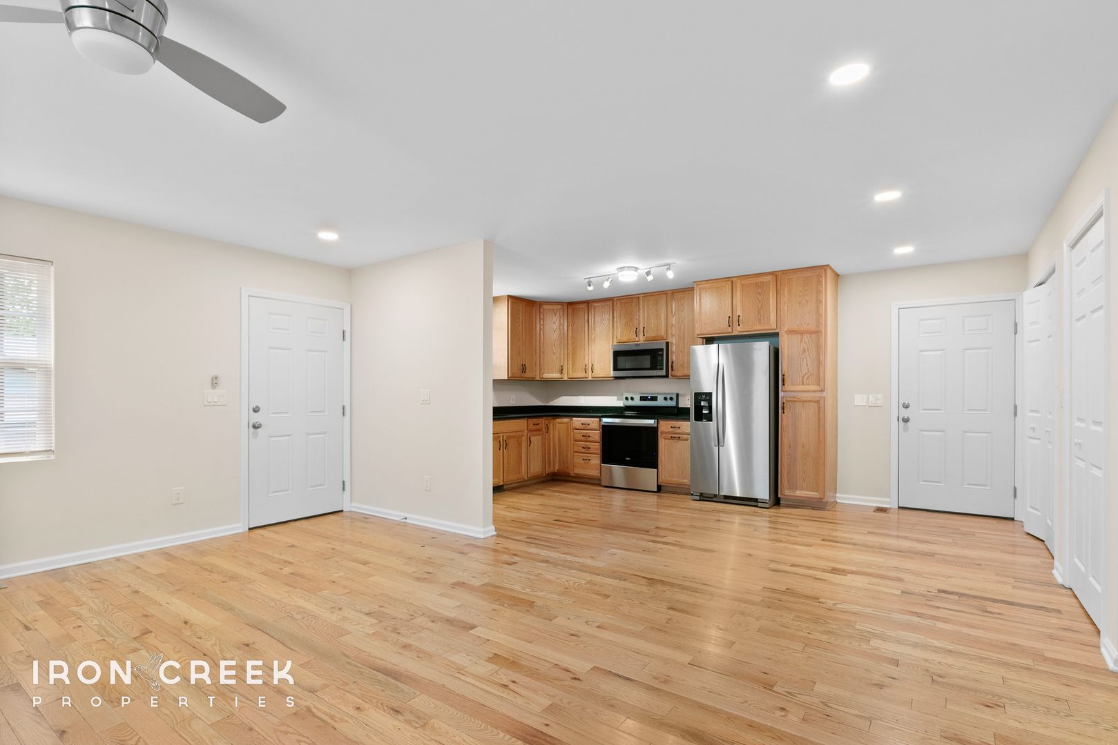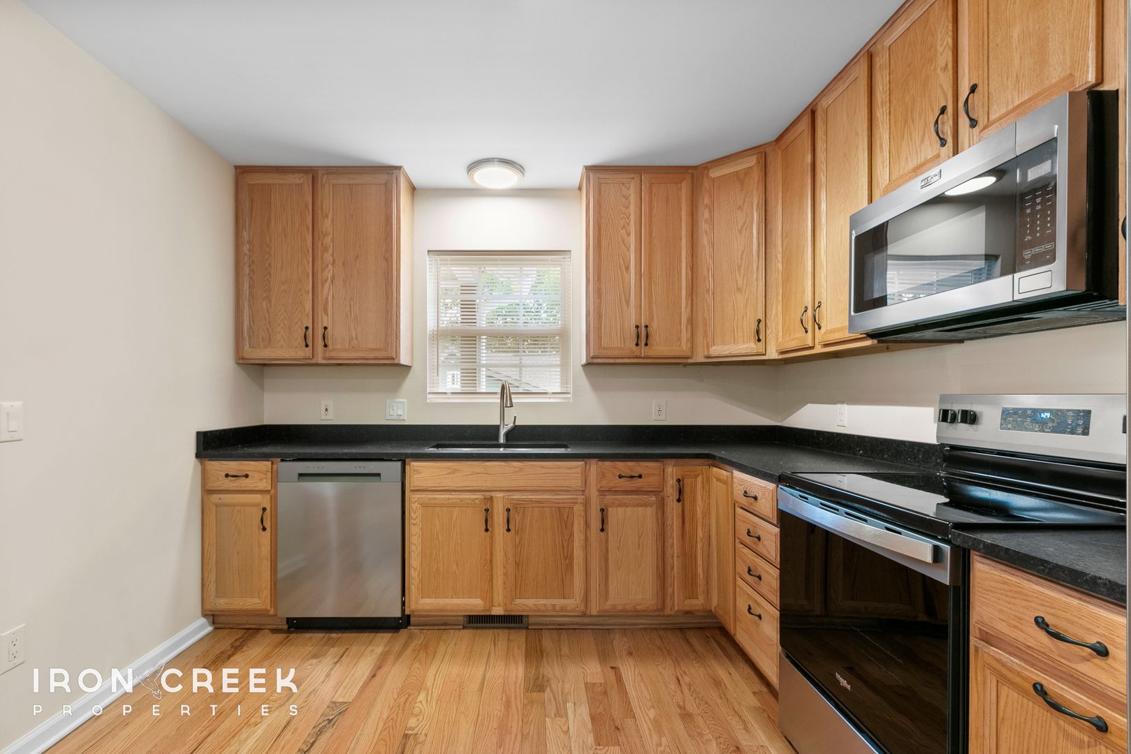9 Dundee Street invites you home with a partially-covered front porch, abundant natural light, warm hardwood floors, and an open living area. The kitchen is outfitted with stainless steel appliances including a French-door refrigerator, electric range, dishwasher, and built-in microwave. Stunning wood cabinets add a touch of warmth along with storage for all your kitchen essentials.