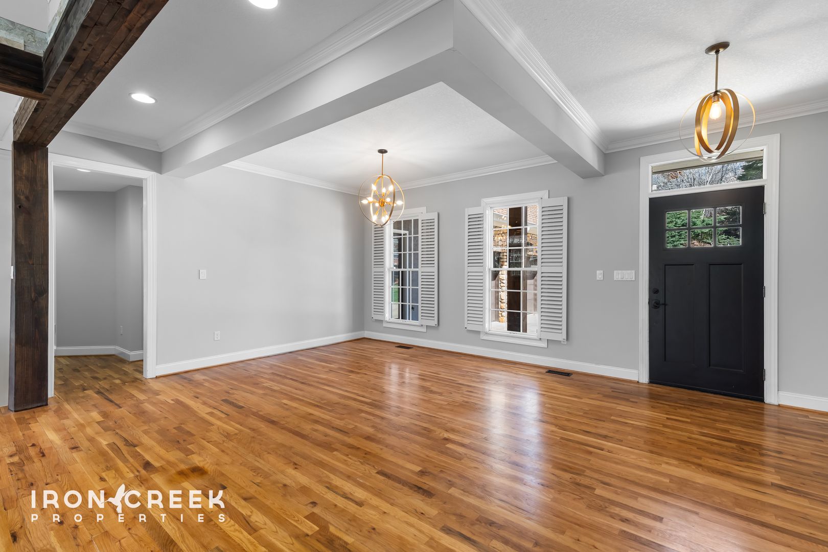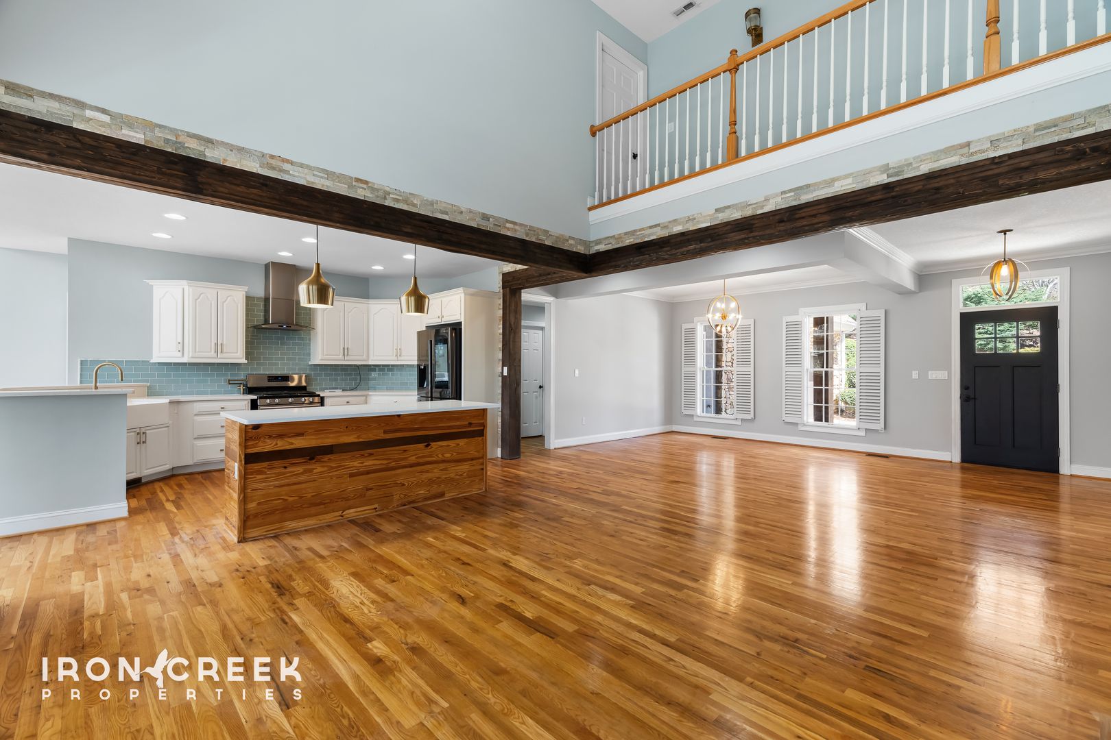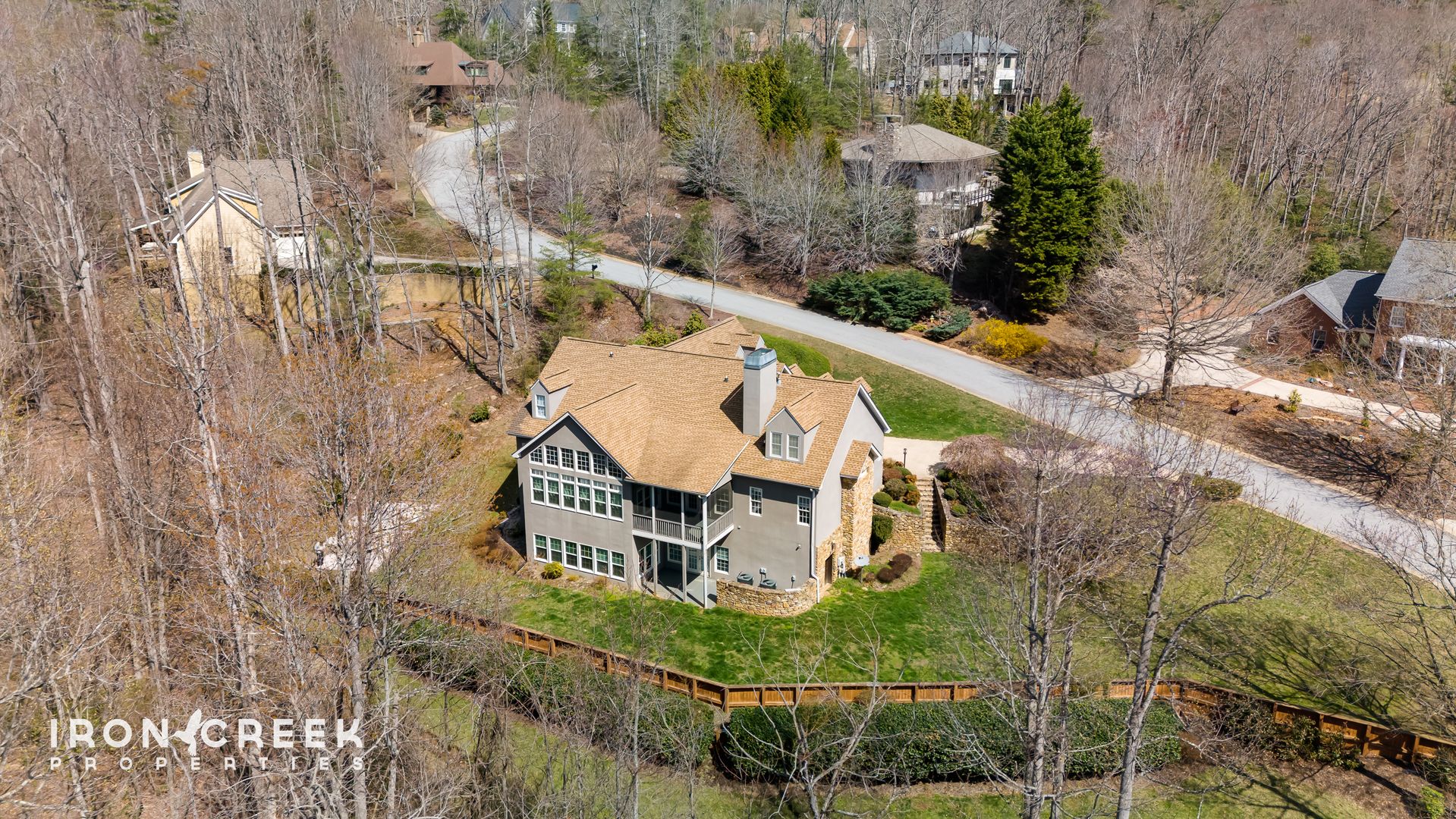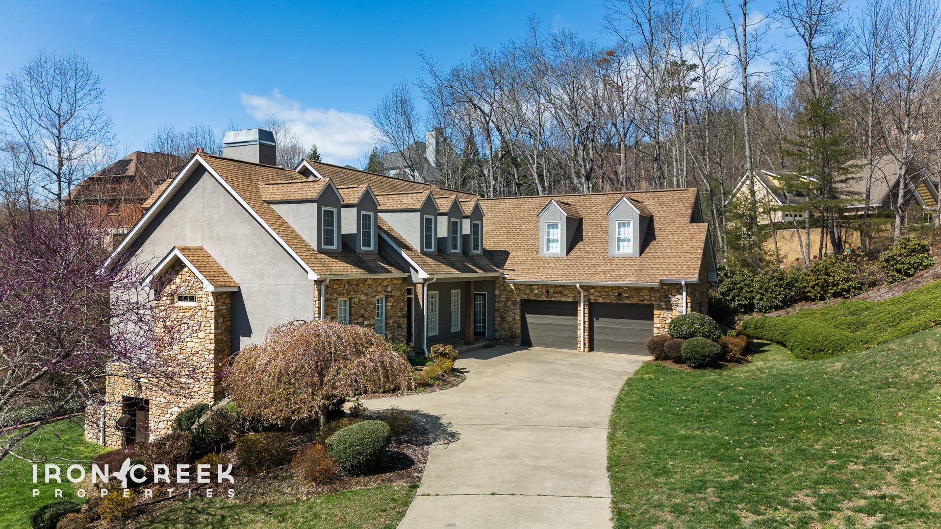 Set on a landscaped lot in Biltmore Park, this six-bedroom, five-and-a-half-bathroom home offers an exceptional scale of living across three fully finished levels — each with its own gathering space. Stone accents, soaring ceilings, exposed wood beams, and floor-to-ceiling windows bring warmth and architectural character to every room.