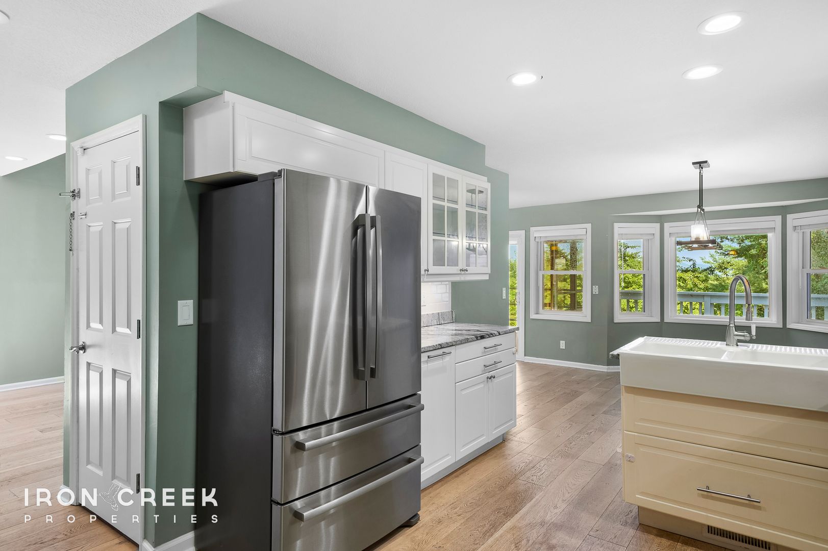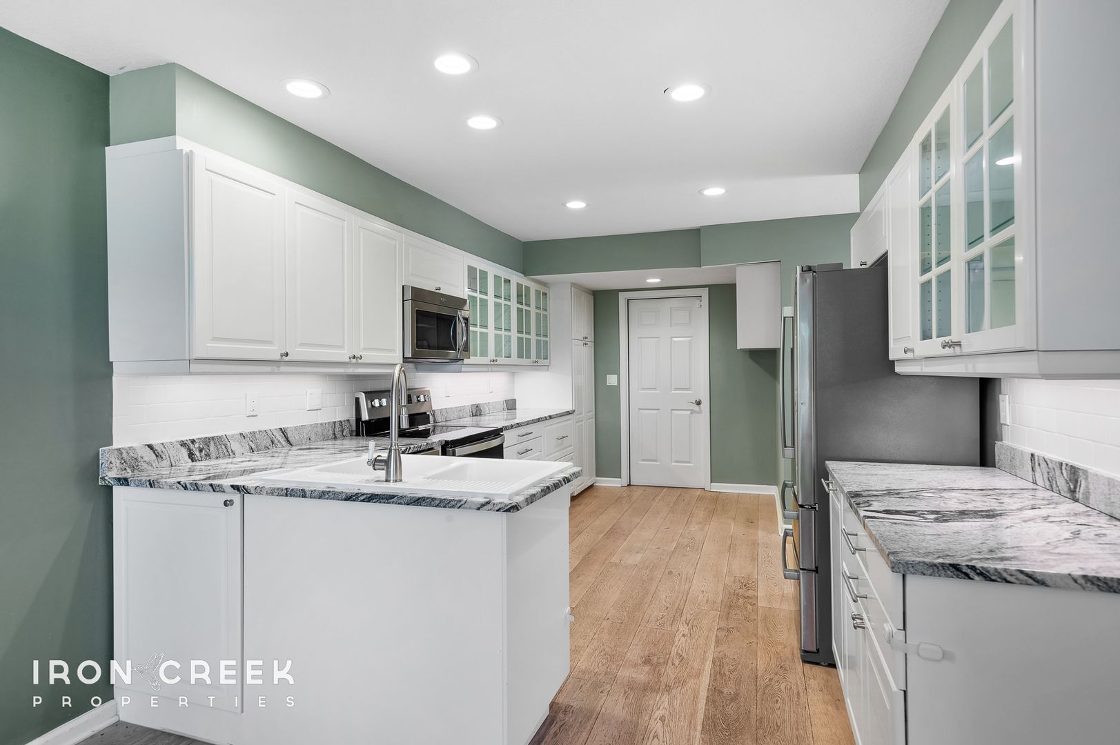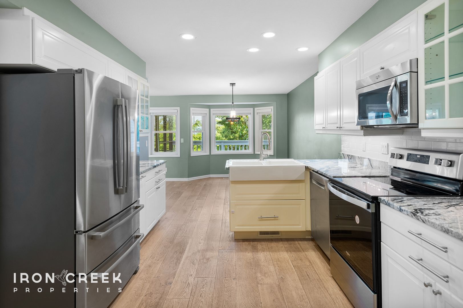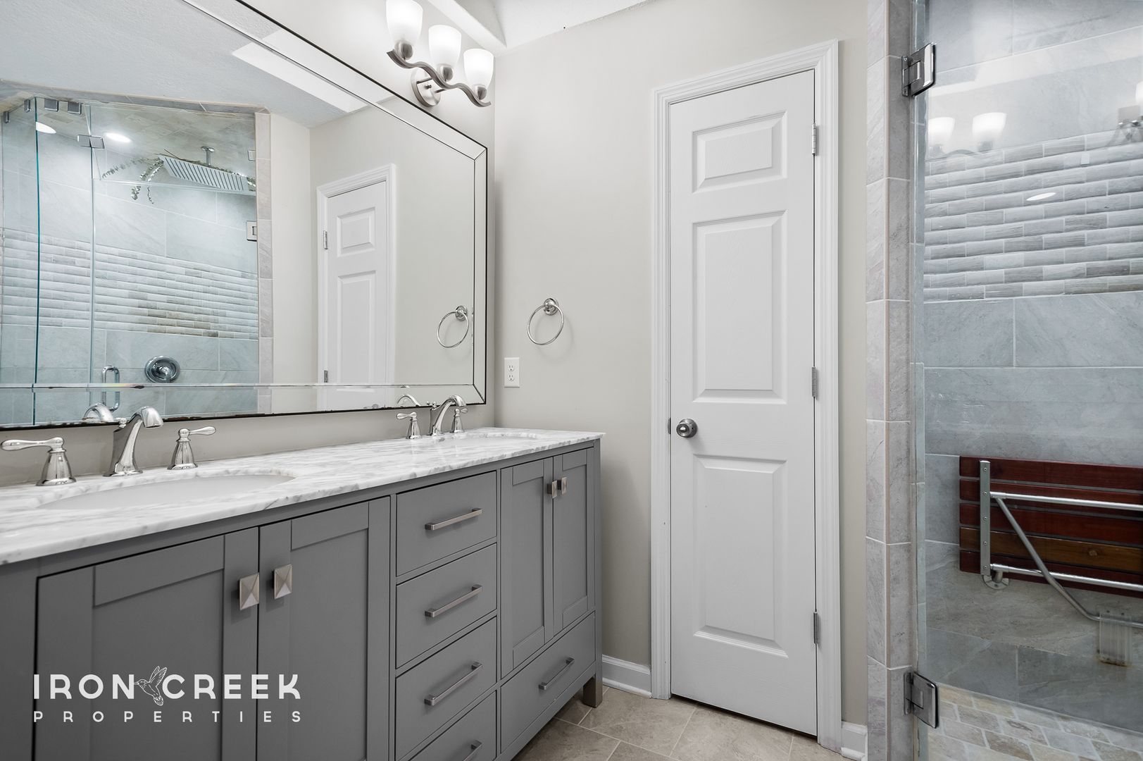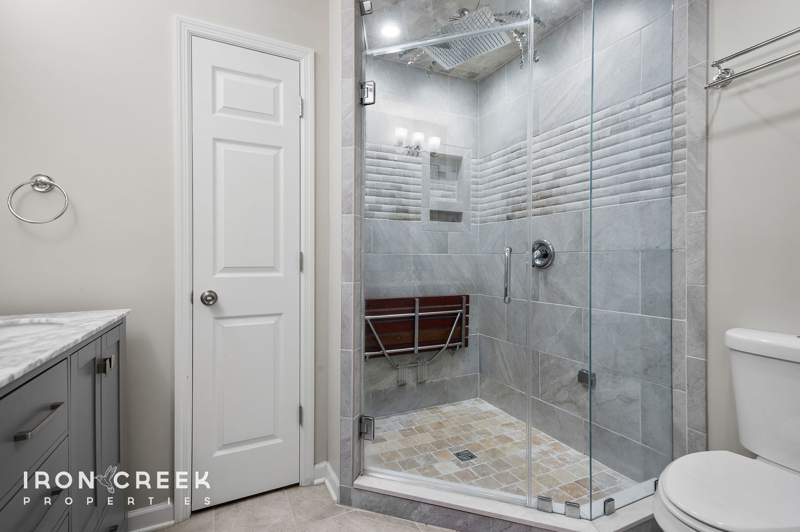 The modern kitchen features stainless steel appliances, granite counters, and gorgeous engineered wood flooring; a perfect place to create your next culinary masterpiece. Retreat to the master bathroom and find a walk-in waterfall shower with wood bench for ultimate relaxation.