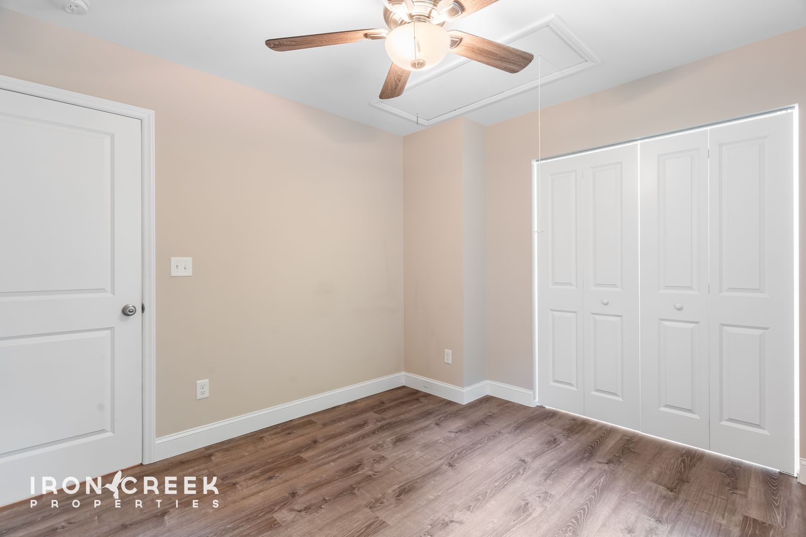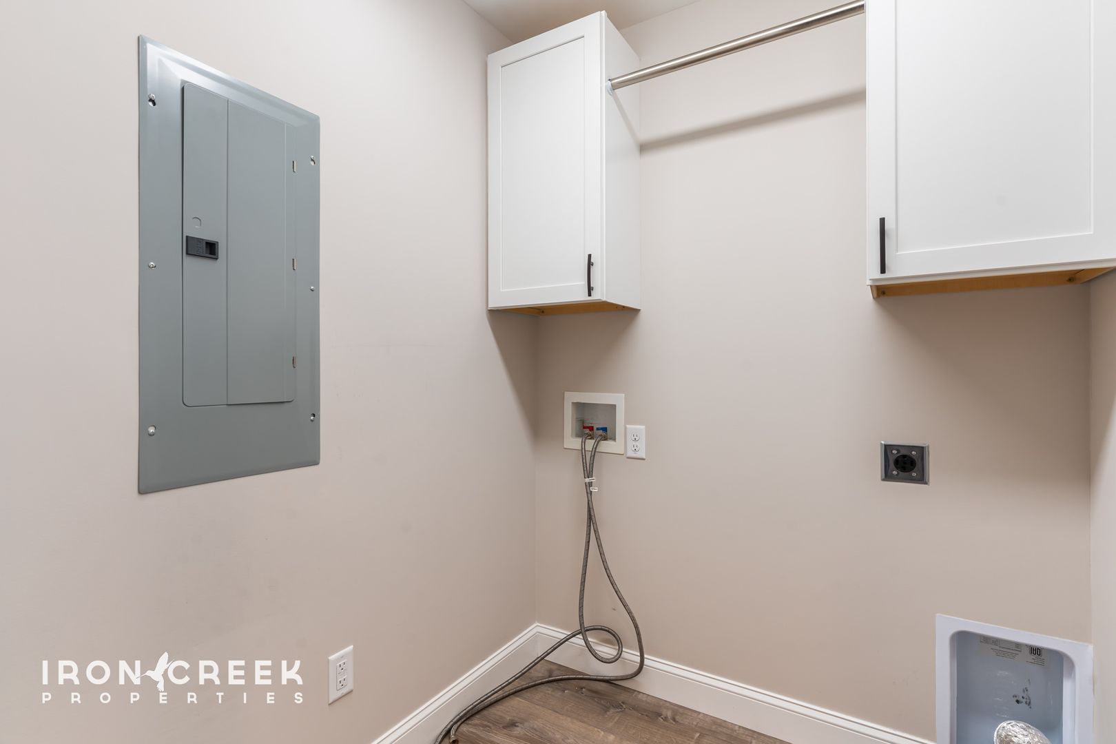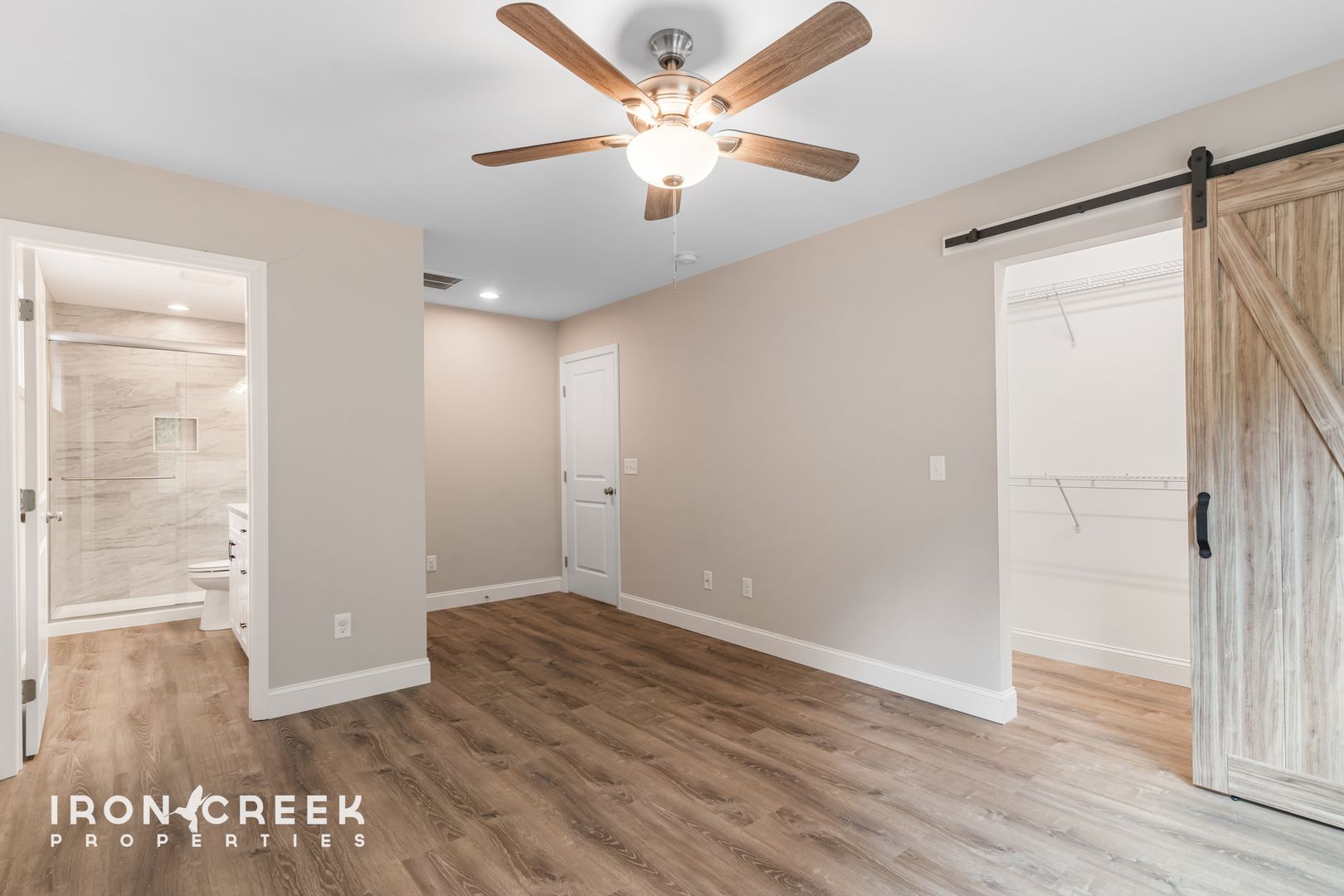 The home offers electric heat and central air conditioning, washer and dryer hookups, and ample storage throughout. The primary bathroom features a double vanity with granite countertops and a stylish barn door accent. Built in 2024, this property showcases quality construction with modern finishes and thoughtful design details that create a comfortable living environment.