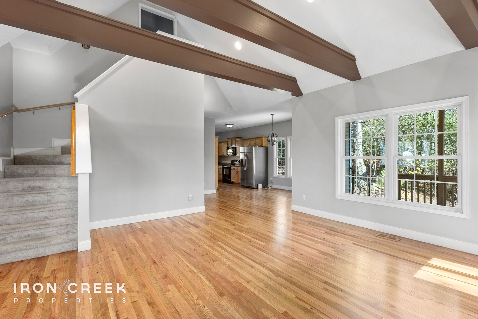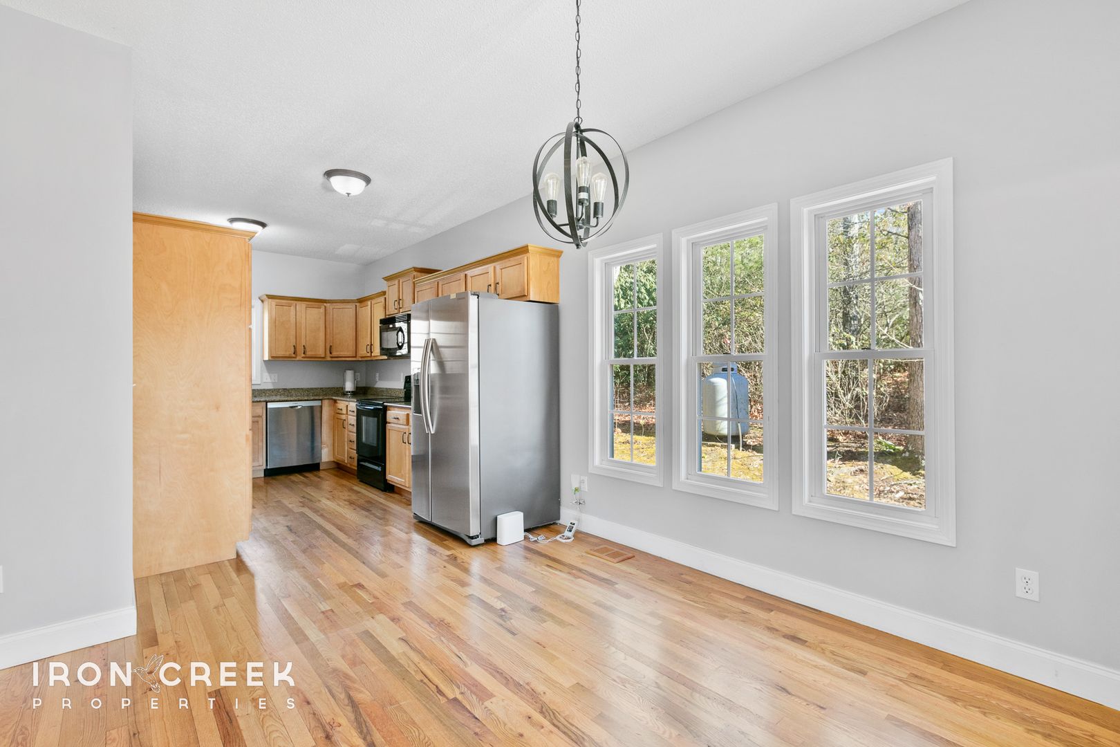 Welcome to this stunning three-bedroom, two-and-a-half-bath home, a perfect retreat set amidst serene natural beauty. Whether you’re looking for a peaceful getaway or a functional family home, this property offers comfort, style, and space. The bright and open living room features vaulted ceilings with exposed wooden beams, abundant windows that fill the space with natural light, and a cozy propane gas fireplace, making it the perfect spot to unwind on cooler evenings. The fully equipped kitchen is a chef’s dream, with stainless steel appliances, generous counter space, and timeless wood cabinetry, all seamlessly flowing into the dining area. Each of the three spacious bedrooms feature abundant windows, offering a tranquil atmosphere and beautiful views of the lush surroundings. The home also includes two full baths and one half bath, all updated with contemporary finishes and thoughtful details.